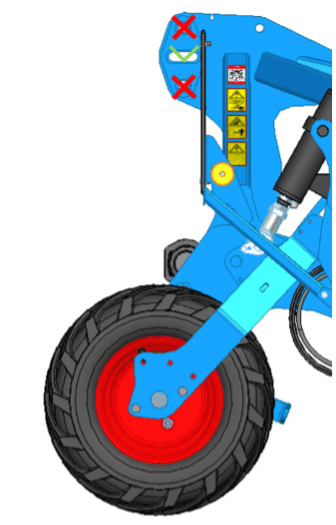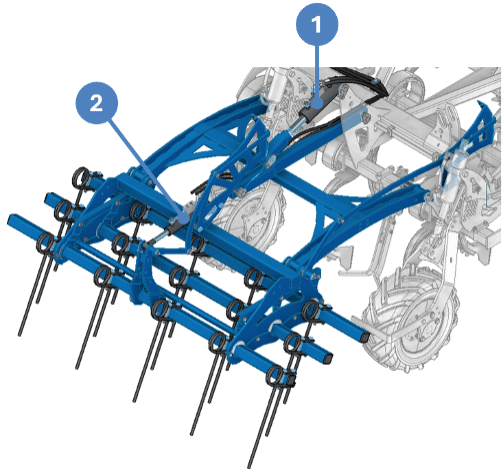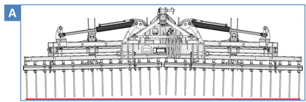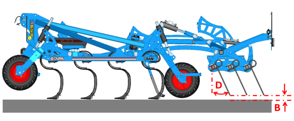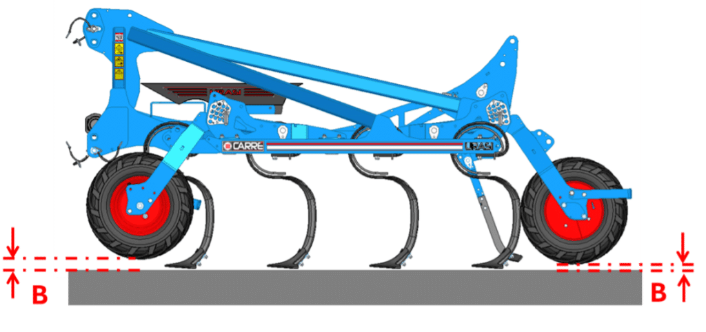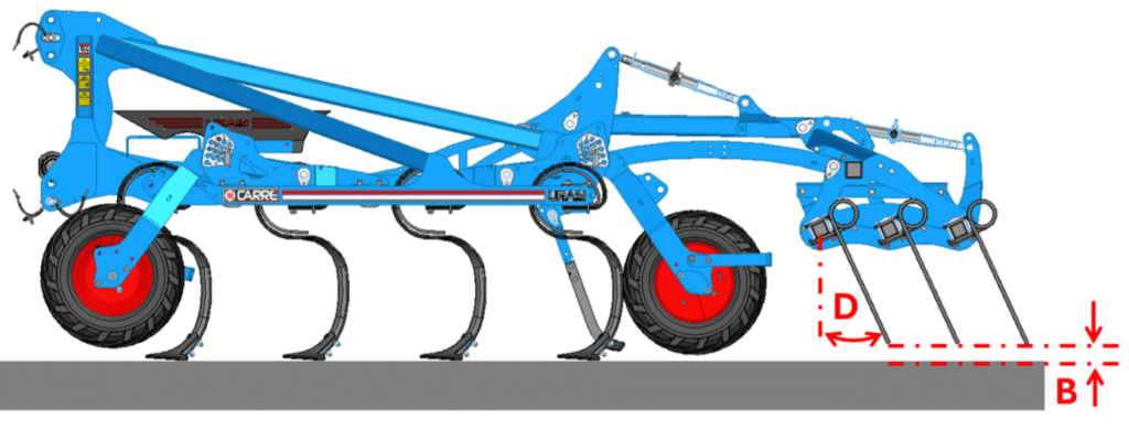 MISE EN GARDEVeiller à ce que la machine soit parallèles au sol lors du travail pour que les dents semeuses soient à la même profondeur et ainsi avoir une profondeur homogène sur toute la longueur du semoir.