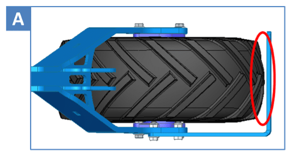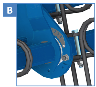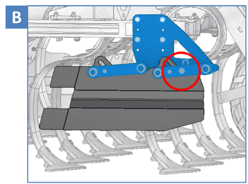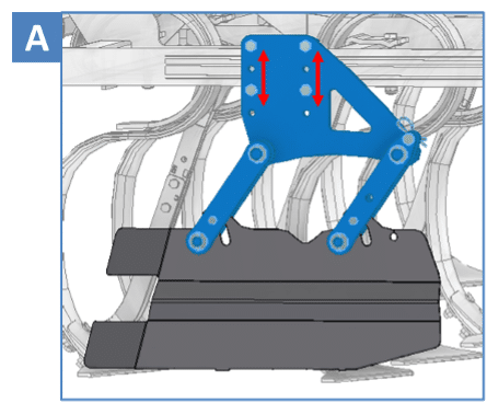 La paire de déflecteur latéraux se règle suivant la profondeur de travail. Deux positions sont possibles (A). Ils doivent être régler pour effleurer le sol. En cas d’important résidus une position escamotée est possible (B).